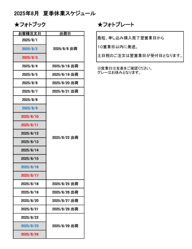 なお、休業期間中もフォトブック、フォトプレートの作成、ご注文は通常通り可能ですのでぜひご利用くださいませ。